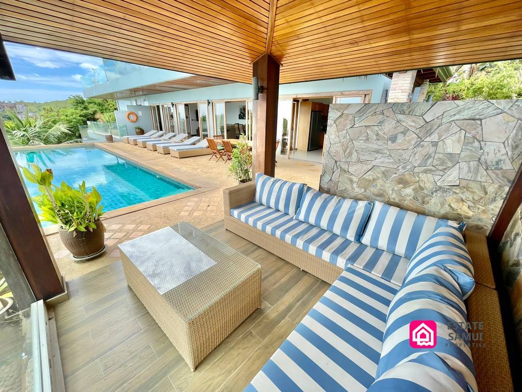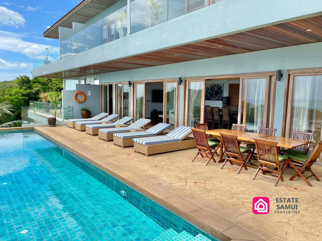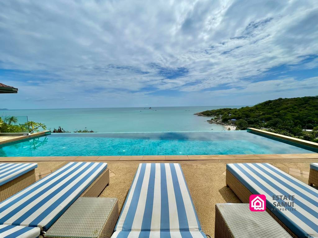Featuring simply stunning panoramic sea, island and coastal vistas over the nearby idyllic beach at Tongson Bay to the east towards several distant rocky islands that line the blue horizon and the nearby island of Koh Phangan to the west, Baan Talay Sai Villa is a spectacular 5 bedroom luxury sea view villa that will inspire and indulge your senses. Not only does this Koh Samui holiday villa offer sensational views, it also allows access to the white sands and wonderful swimming conditions of Tongson Bay beach just 250m from the villa along a safe and easily accessible concrete path.