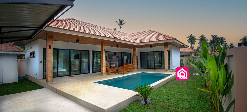 Set in a peaceful part of Lipa Noi, these contemporary homes represent Great value villas for sale designed for comfortable island living. Located on Koh Samui, the villas combine modern architecture with practical layouts that suit everyday life. Each residence features three bedrooms and three bathrooms, making the design ideal for families, couples, or long-term residents.