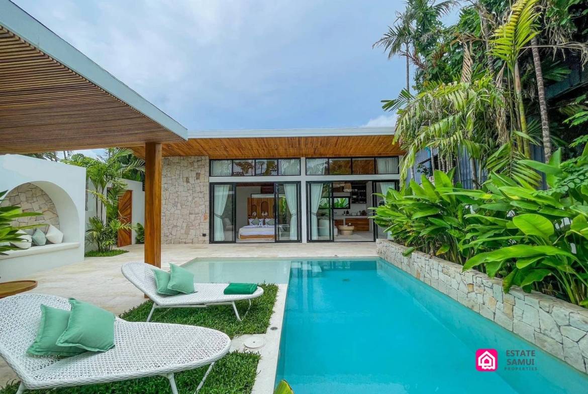 These Bophut pool villas blend modern design with the tranquil beauty of Koh Samui, making them perfect for those seeking an exceptional lifestyle in paradise.