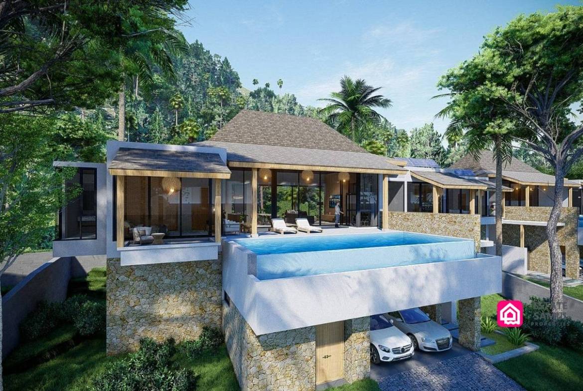 Experience the perfect blend of luxury and nature with these modern Maenam pool villas on Koh Samui. Crafted by a highly experienced local developer known for delivering quality projects, each villa offers a contemporary design nestled in lush surroundings. The partial sea view from the upper level adds a touch of serenity to your living experience, making these properties truly special.