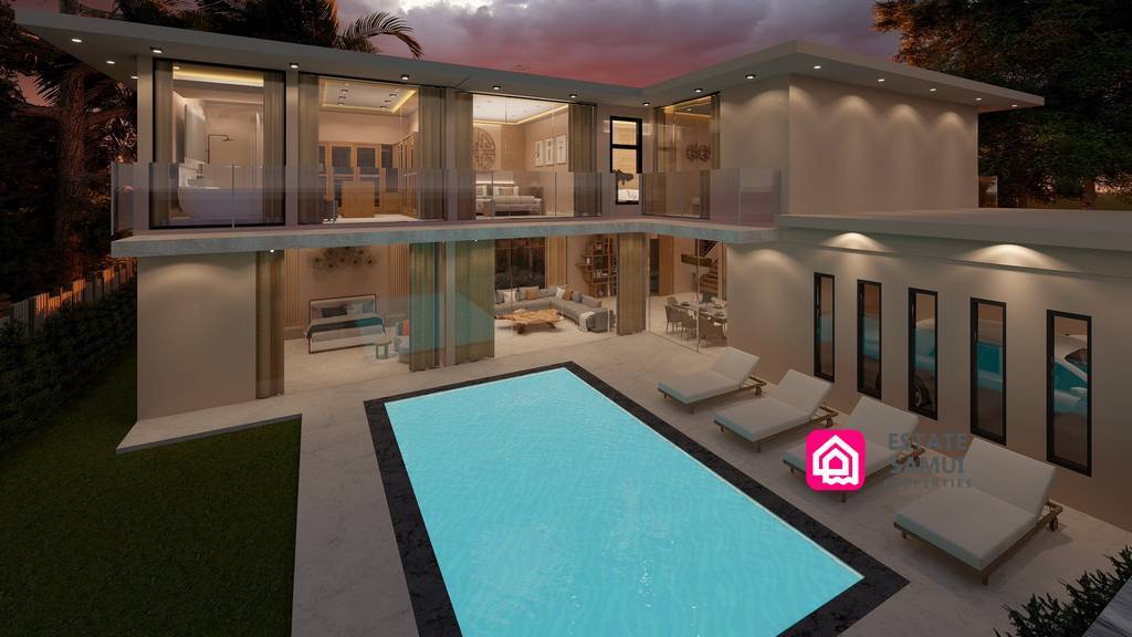 Set within the tranquil surroundings of Thong Krut, these Modern Thong Krut Villa offer a luxurious tropical lifestyle in one of Koh Samui’s most peaceful areas. The project features a contemporary design that blends stylish comfort with nature. Ideal for families or investors, this spacious 4-bedroom villa provides high-end finishes, modern amenities, and ample indoor-outdoor living space.