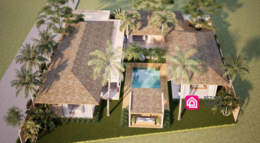 Nestled near the charming Mae Nam area, your modern tropical villa for sale in Koh Samui enjoys a peaceful, yet well-connected setting. Just about 1.2 km from Bang Po Beach, you can stroll to a quiet shoreline in under five minutes. Meanwhile, Ban Tai Beach lies roughly 1.7 km away, offering a slightly livelier seaside option.