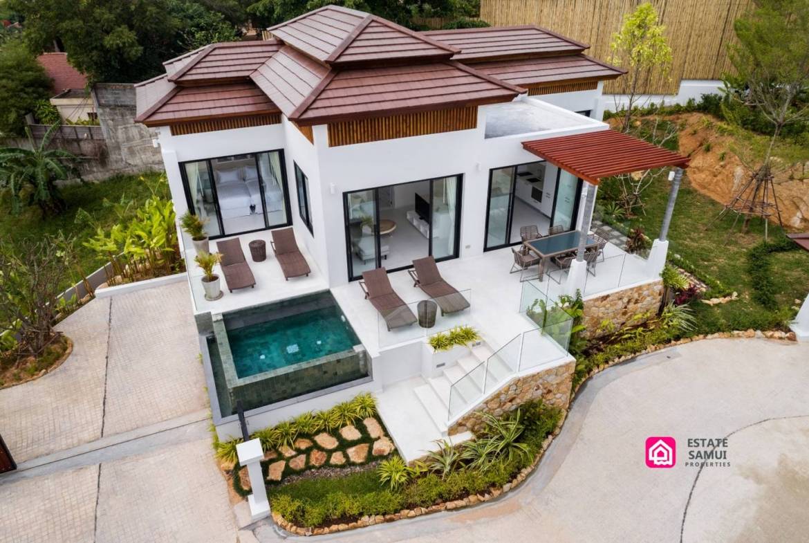 Located within the Horizon Villas gated community, this villa provides both privacy and convenience, just a 5-10 minute short walk from Choeng Mon beach and village. Chaweng Beach, Fisherman’s Village, and Koh Samui airport are all within a 10-minute drive.