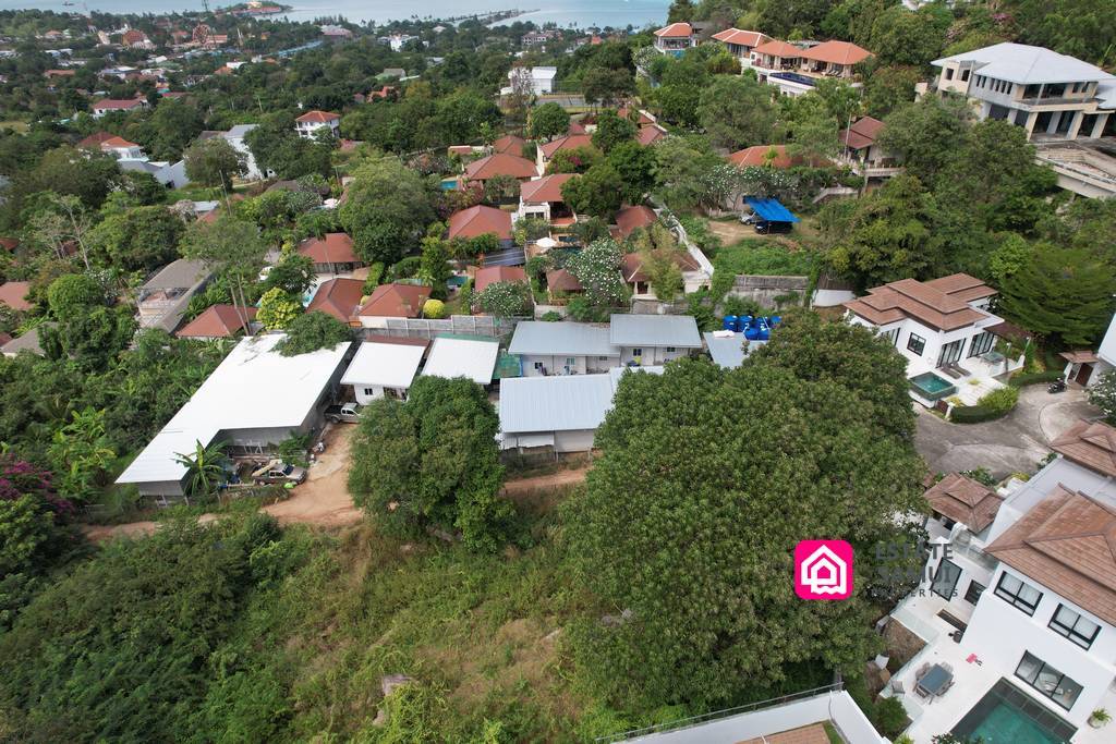 The land measures 2 ngan, totaling 800 sqm, with a practical and build-friendly layout. It benefits from a gentle sea view outlook and a level surface. Additionally, utilities and access roads are nearby. As a result, this Plai Laem land plot stands out as a smart option on Koh Samui for residential development.