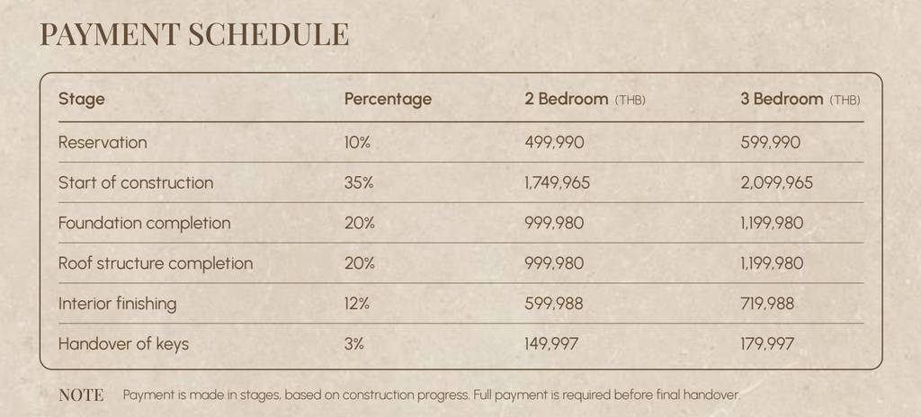 Ownership Note: Lease contract valid until 2057 with Annual Lease Payments from 55,000 – 62,000 THB/Year Depending on Unit.