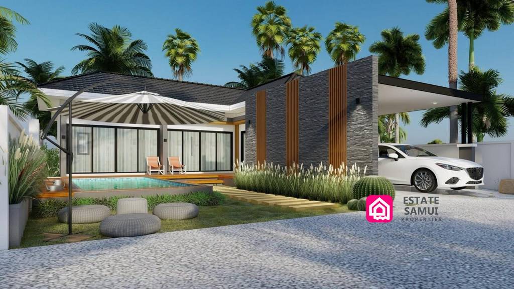 Set in the serene and unspoiled south-west of Koh Samui, these Lipa Noi villas for sale offer a perfect blend of privacy and comfort. Ideal for anyone seeking a quiet tropical escape, each villa sits on a compact yet functional 250 sqm land plot and includes modern design touches with a private pool and covered parking.